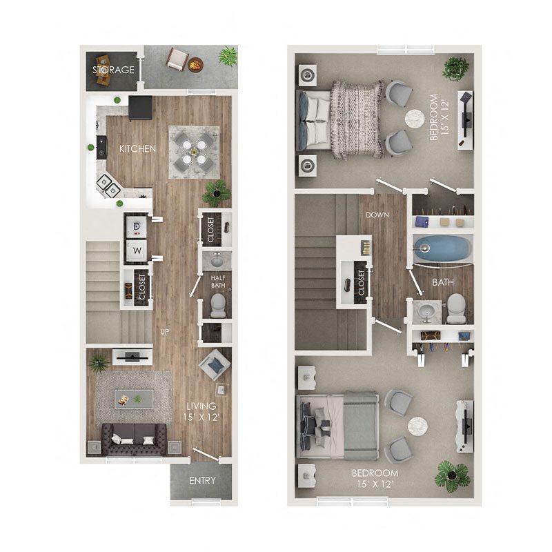 Our collection of floorplans range from one and two bedroom apartments to two and three bedroom townhomes.